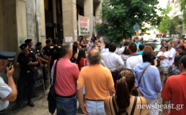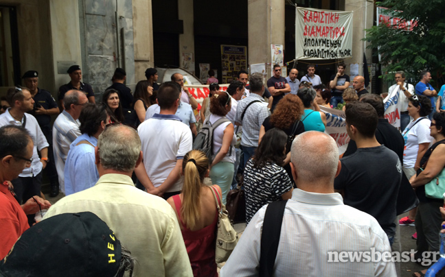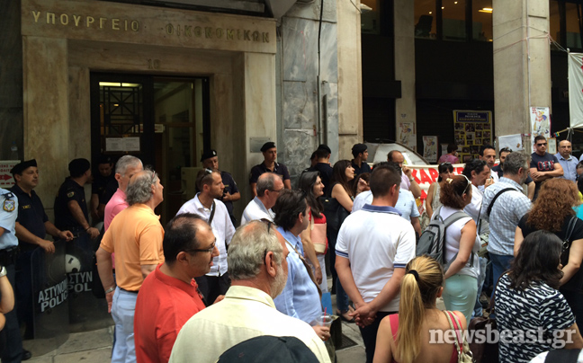 Λογιστές και φοροτεχνικοί διαμαρτύρονται αυτή την ώρα έξω από το υπουργείο Οικονομικών επί της Καραγιώργη Σερβίας.