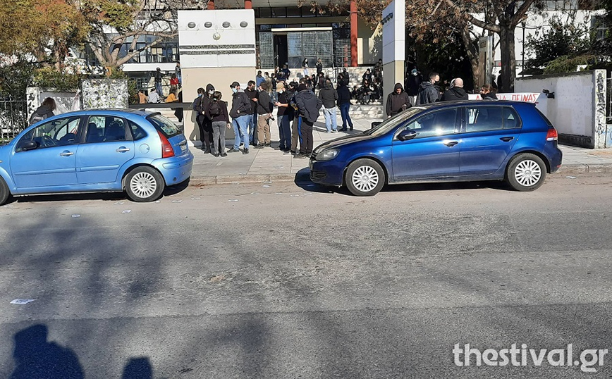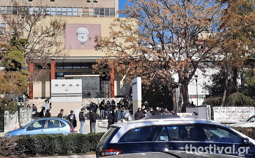 Συγκέντρωση αλληλεγγύης στον Δημήτρη Κουφοντίνα, πραγματοποιούν φοιτητές έξω από το κτήριο της Πολυτεχνικής Σχολής του ΑΠΘ, στη Θεσσαλονίκη.