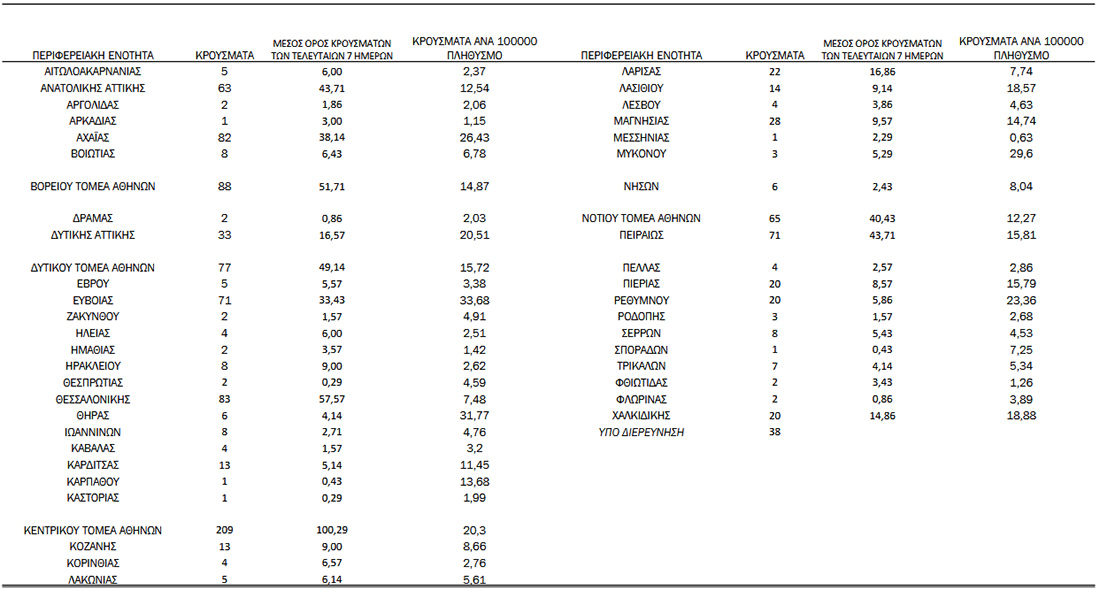 - 209 κρούσματα στην ΠΕ Κεντρικού Τομέα Αθηνών