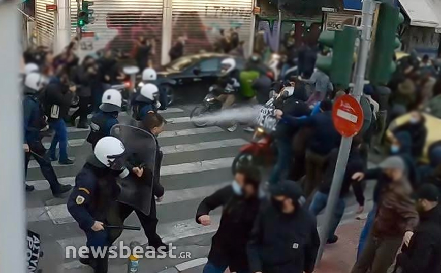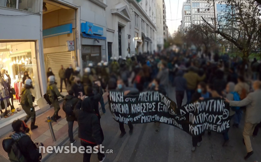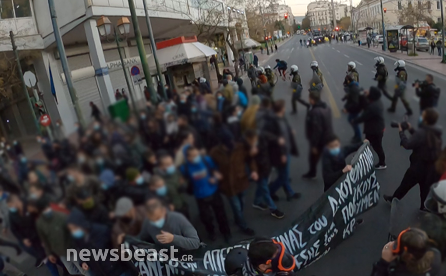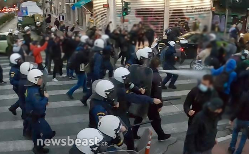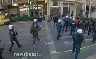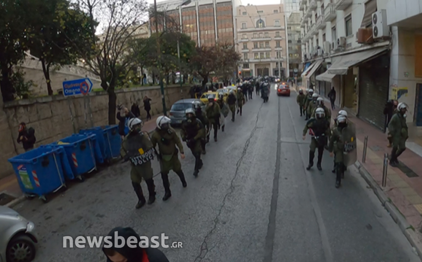 Οι συγκεντρωμένοι προσπάθησαν να κάνουν μίνι πορεία στους δρόμους του κέντρου αλλά κυνηγήθηκαν ξανά από τα ΜΑΤ.