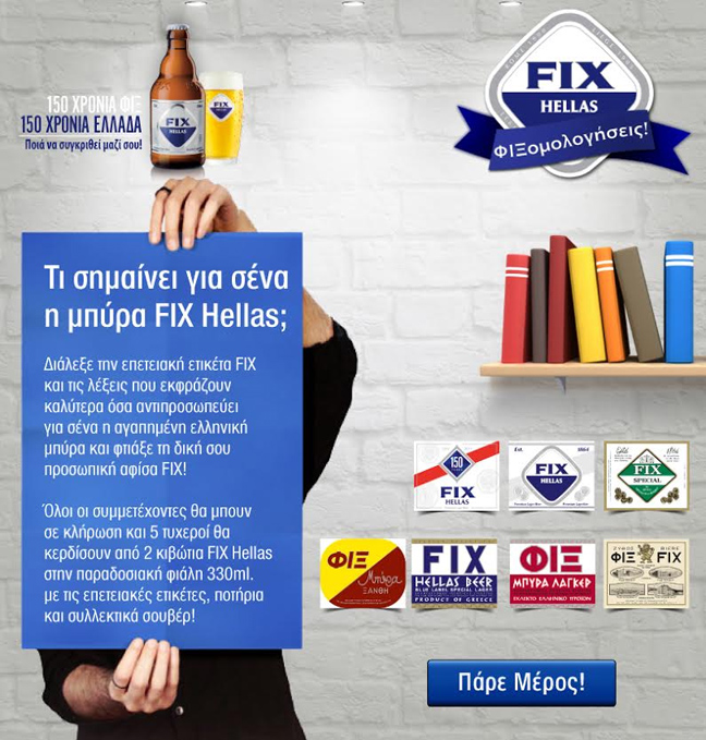 Τα βήματα είναι απλά: Μέσω της εφαρμογής, επιλέγεις την αγαπημένη σου επετειακή ετικέτα, που κυκλοφορεί μόνο για φέτος στην παραδοσιακή φιάλη FIX 330ml και ταυτόχρονα τις λέξεις που εκφράζουν για εσένα με τον καλύτερο τρόπο τη σχέση σου με την αγαπημένη ελληνική μπύρα.