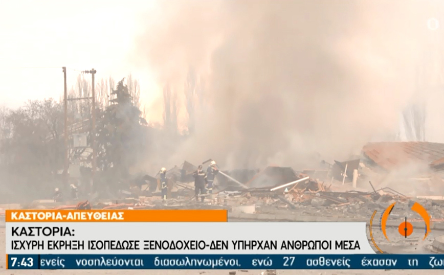 Ισχυρή έκρηξη γύρω στις 1.30 τα ξημερώματα στις εγκαταστάσεις του ξενοδοχείου «Τσάμης» στην Καστοριά είχε αποτέλεσμα το κτιριακό συγκρότημα να καταρρεύσει ολοσχερώς.