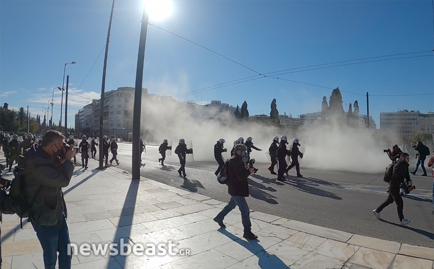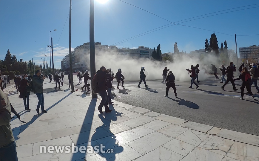 Η ένταση κράτησε ελάχιστα και στη συνέχεια οι διαδηλωτές έπειτα άρχισαν να αποχωρούν.