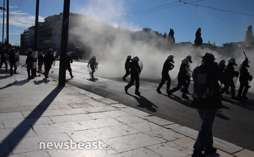 Σημειώνεται ότι έγινε χρήση κρότου λάμψης και χημικών.