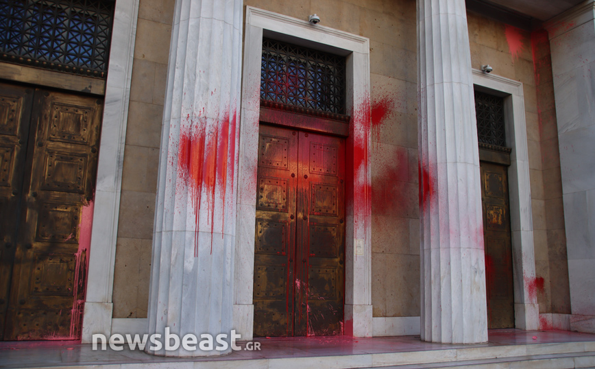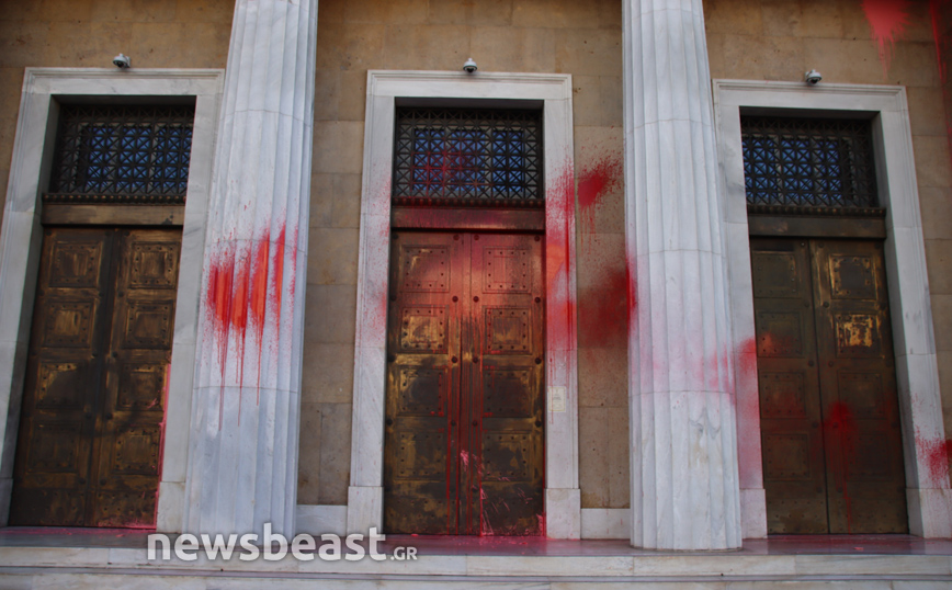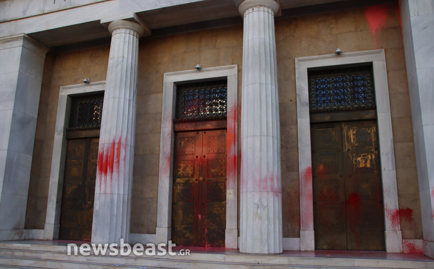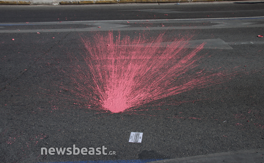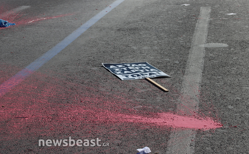 Εκεί ήρθαν σε σύγκρουση με τις δυνάμεις τω ΜΑΤ πετώντας μπογιές,με τα ΜΑΤ να απαντούν με χημικά.