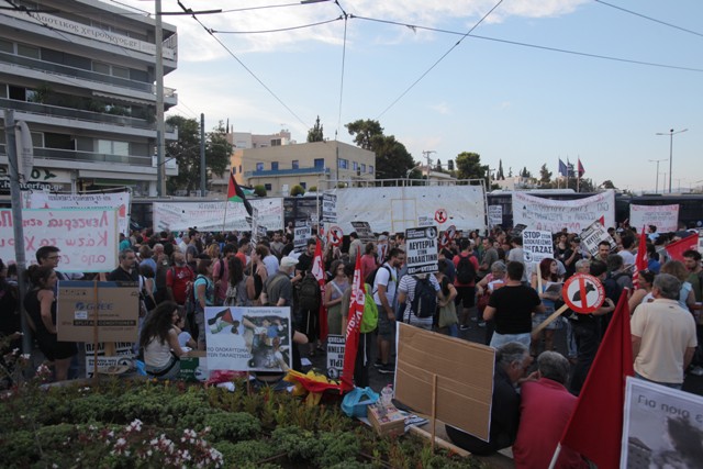 Με μεγάλη συμμετοχή κόσμου και παρουσία ισχυρών αστυνομικών δυνάμεων, ολοκληρώθηκε η διαδήλωση έξω από την ισραηλινή πρεσβεία με αίτημα να σταματήσουν οι βομβαρδισμοί στη Λωρίδα της Γάζας.