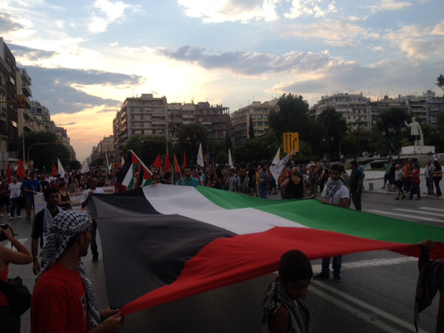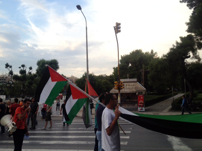 Συγκέντρωση στο άγαλμα του Βενιζέλου και πορεία διαμαρτυρίας για τις επιθέσεις του ισραηλινού στρατού στη Λωρίδα της Γάζας πραγματοποίησε η κομματική οργάνωση Κ. Μακεδονίας του ΚΚΕ, με συμμετοχή και παλαιστινίων της πόλης.