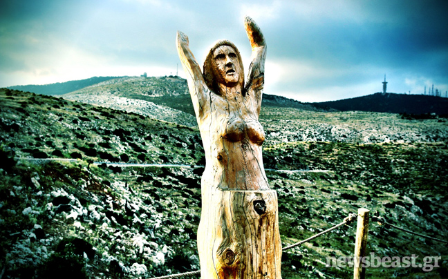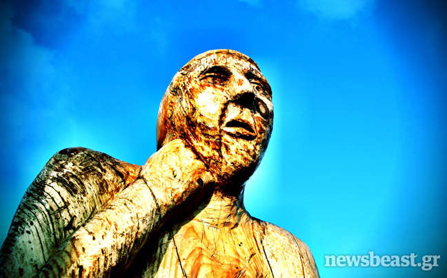 Πρόκειται για το έργο του δασικού υπαλλήλου Σπύρου Ντασιώτη και υπάρχει εκεί εδώ και περίπου ενάμιση χρόνο. Στέκεται απέναντι από το εγκαταλελειμμένο ξενοδοχείο «Ξενία». Ένα κτήριο που λίγοι θα θυμούνται ότι η αρχική του χρήση ήταν να λειτουργήσει ως σανατόριο από το 1912 και για τα επόμενα 30 χρόνια.