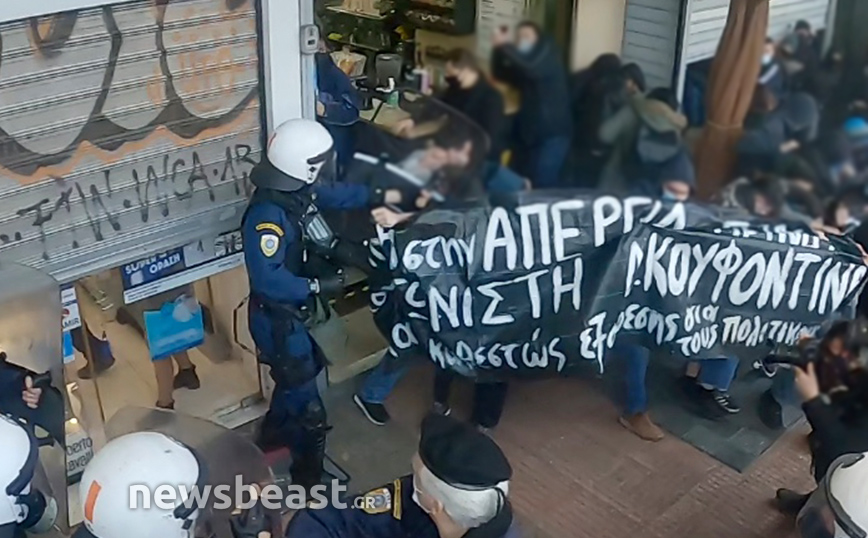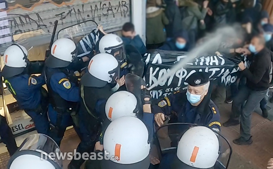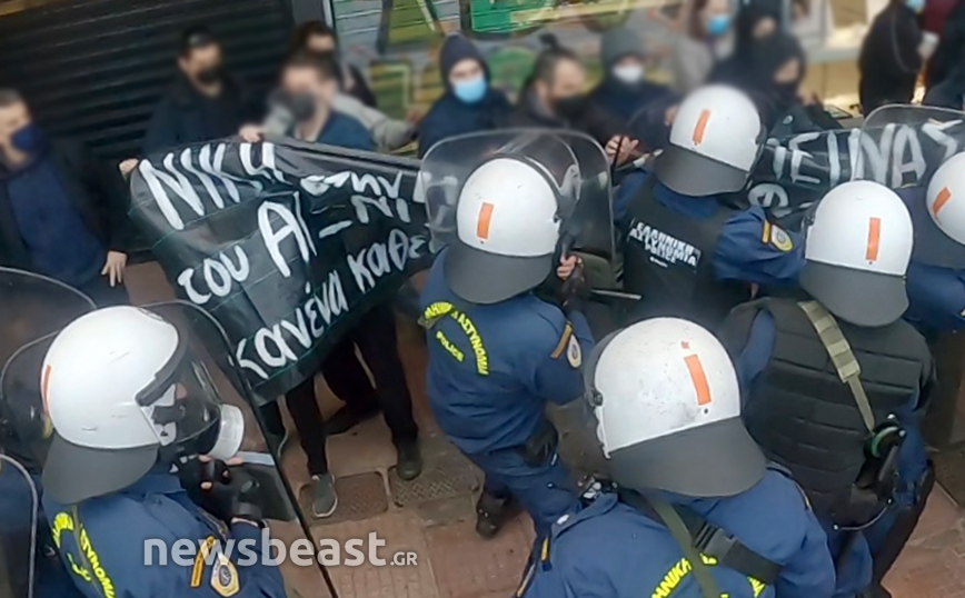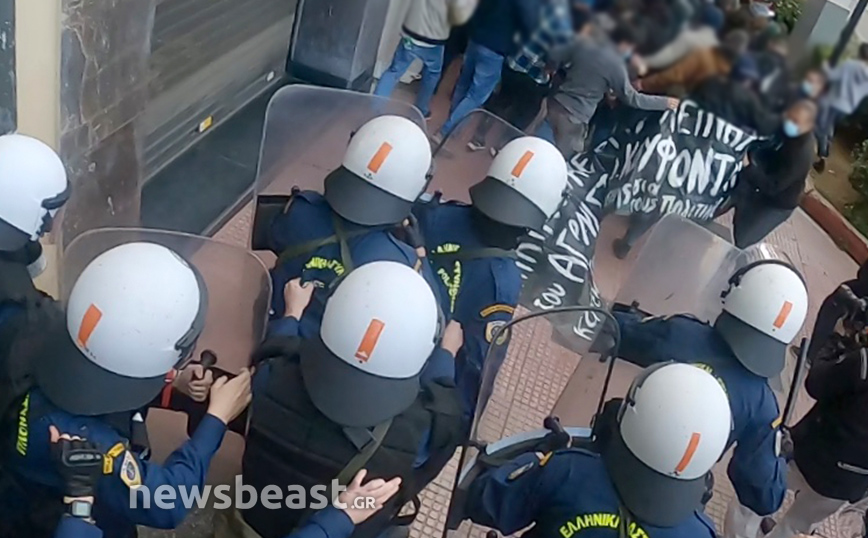 Σύμφωνα με πληροφορίες οι άνδρες των ΜΑΤ επιτέθηκαν στους διαδηλωτές με τις ασπίδες και τα γκλοπ άμεσα ενώ μεγάλη αστυνομική δύναμη τους εκδίωξε μέχρι και την Ομόνοια.