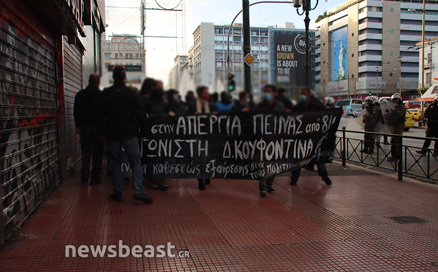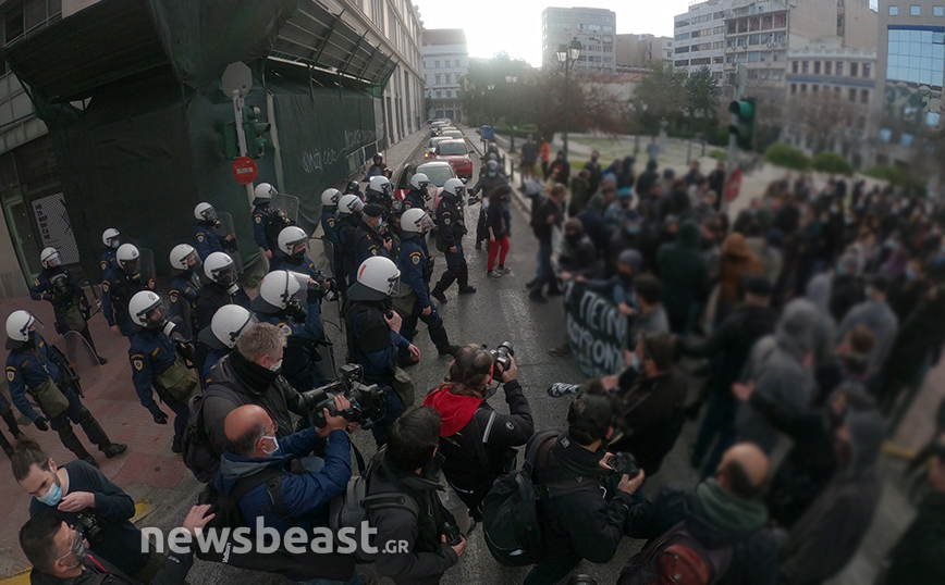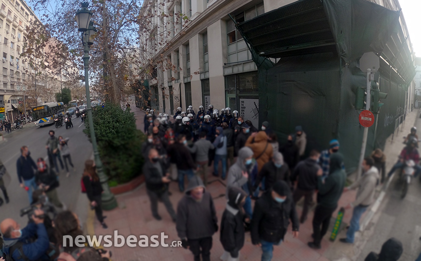 Αυτή τη στιγμή οι διαδηλωτές βρίσκονται υπό αυστηρό αστυνομικό κλοιό στην πλατεία Ομονοίας.
