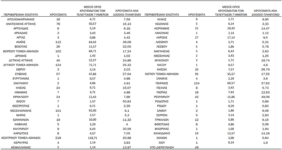 - 76 κρούσματα στην Π.Ε. Ανατολικής Αττικής