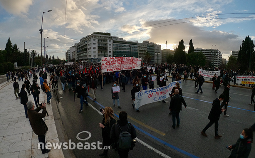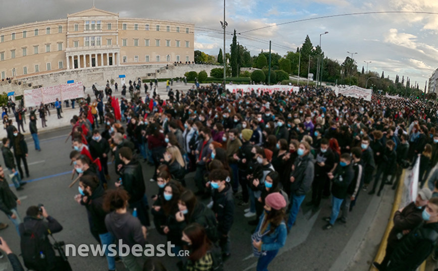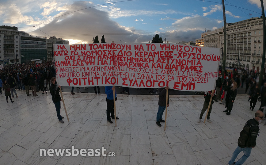Φοιτητικοί σύλλογοι, μαθητές, εκπαιδευτικοί σύλλογοι-ομοσπονδίες-σωματεία, καθώς και άλλα εργατικά σωματεία και φορείς έχουν συγκεντρωθεί στο Σύνταγμα, ζητώντας να αποσυρθεί το νομοσχέδιο του υπουργείου Παιδείας, το οποίο ψηφίζεται σήμερα.