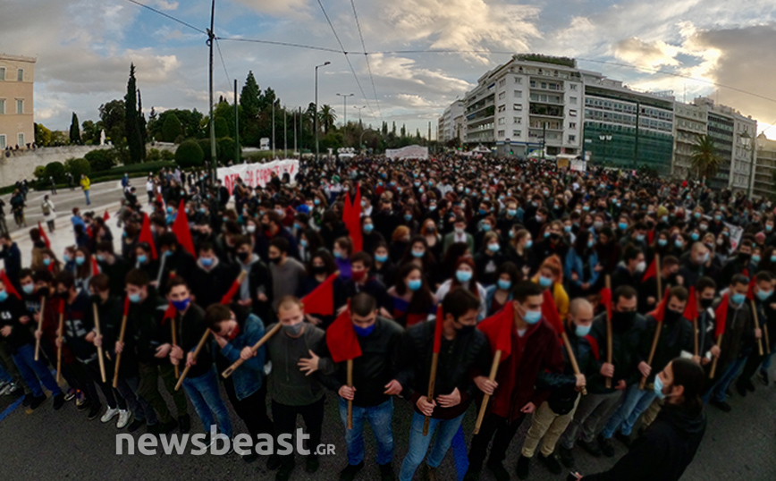 Νωρίτερα, φοιτητικοί σύλλογοι με κεντρικό σύνθημα «Απ’ τα ιδρύματά μας δεν λείπει η αστυνομία, δώστε λεφτά, καθηγητές, βιβλία», πραγματοποίησαν προσυγκέντρωση στα Προπύλαια και με πορεία κατευθύνθηκαν μέχρι τη Βουλή.