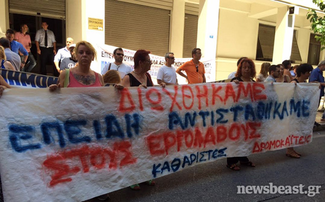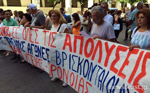 Οι συγκεντρωμένοι διαμαρτύρονται για τη διαδικασία της αξιολόγησης, η οποία, όπως υποστηρίζουν, οδηγεί σε απολύσεις. Κλειστή είναι αυτή την ώρα η οδός Αριστοτέλους μπροστά από το υπουργείο. Μέλη της Πανελλήνιας Ομοσπονδίας Εργαζομένων στα Δημόσια Νοσοκομεία (ΠΟΕΔΗΝ) έχουν μαζί τους φωτοτυπίες από τα χαρτιά της αξιολόγησης.