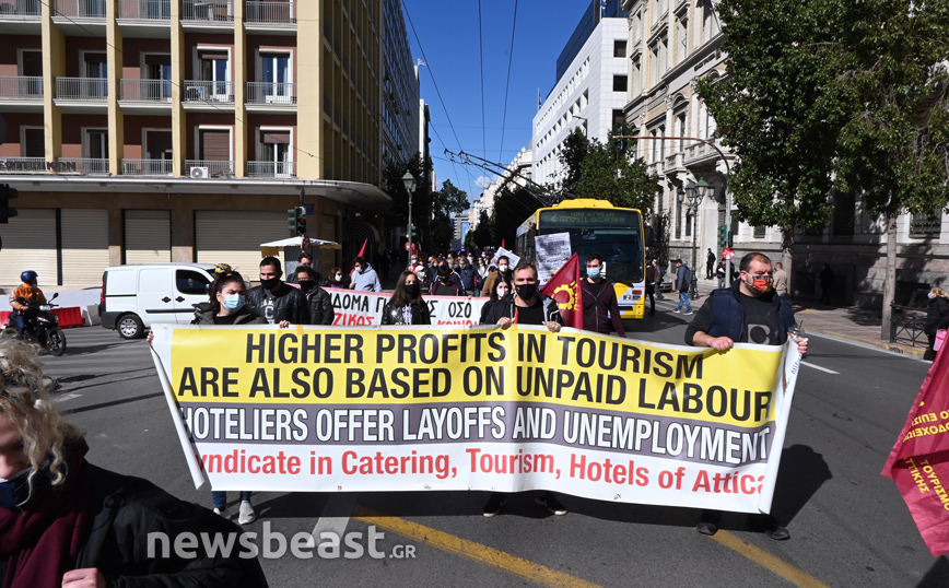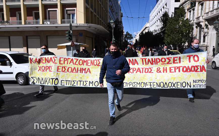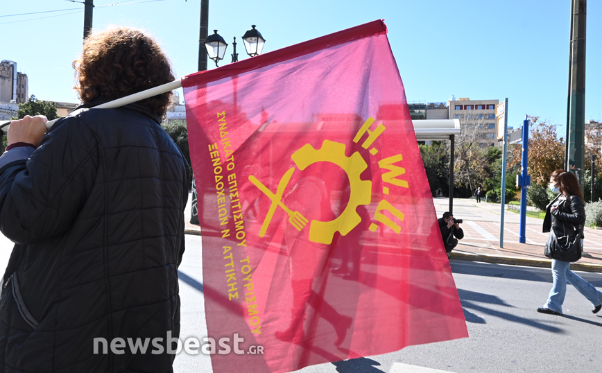 Πορεία προς τη Βουλή πραγματοποίησαν την Παρασκευή (12/2) οι εργαζόμενοι στα ξενοδοχεία και τον επισιτισμό, απαιτώντας να συναντηθούν άμεσα με τον υπουργό Εργασίας Κωστή Χατζηδάκη.