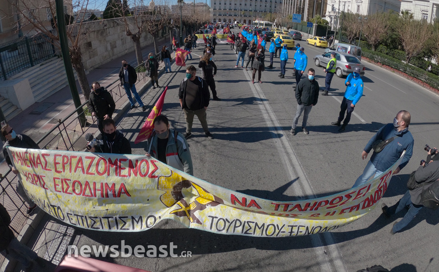 Οι συμμετέχοντες στην κινητοποίηση ζητούν από την κυβέρνηση να βρει άμεσα λύσεις για τους εργαζόμενους στον τουρισμό και στον επισιτισμό που δεν μπορούν πλέον να επιβιώσουν.