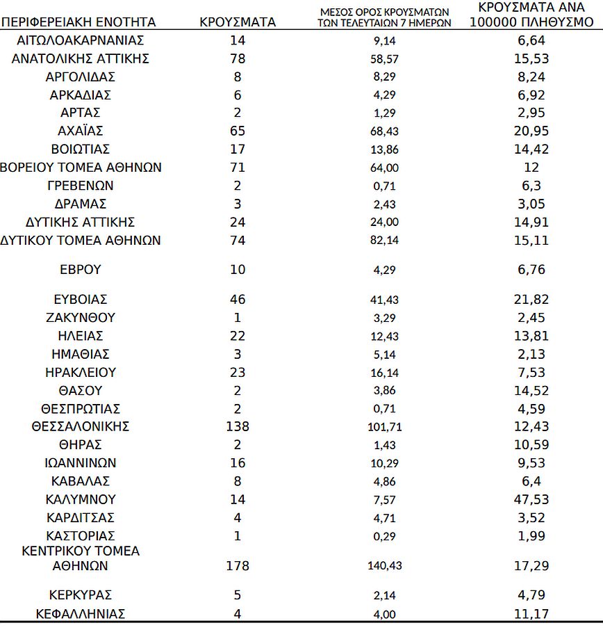 Συγκεκριμένα η Αττική έχει 583 νέα κρούσματα ενώ η Θεσσαλονίκη καταγράφει 138 νέες μολύνσεις.
