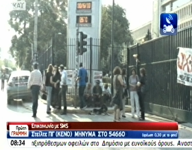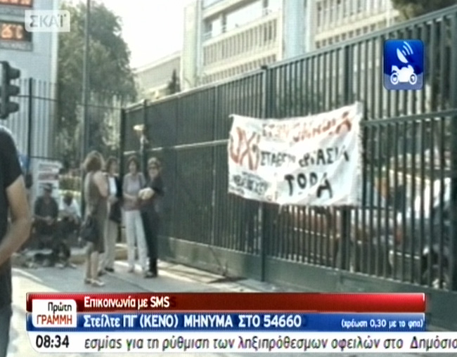 Οι συμβασιούχοι έχουν αποκλείσει τόσο την κεντρική είσοδο της Λεωφόρου Μεσογείων όσο και την πλαϊνή είσοδο στην οδό Δημητσάνας η οποία έχει κλείσει.
