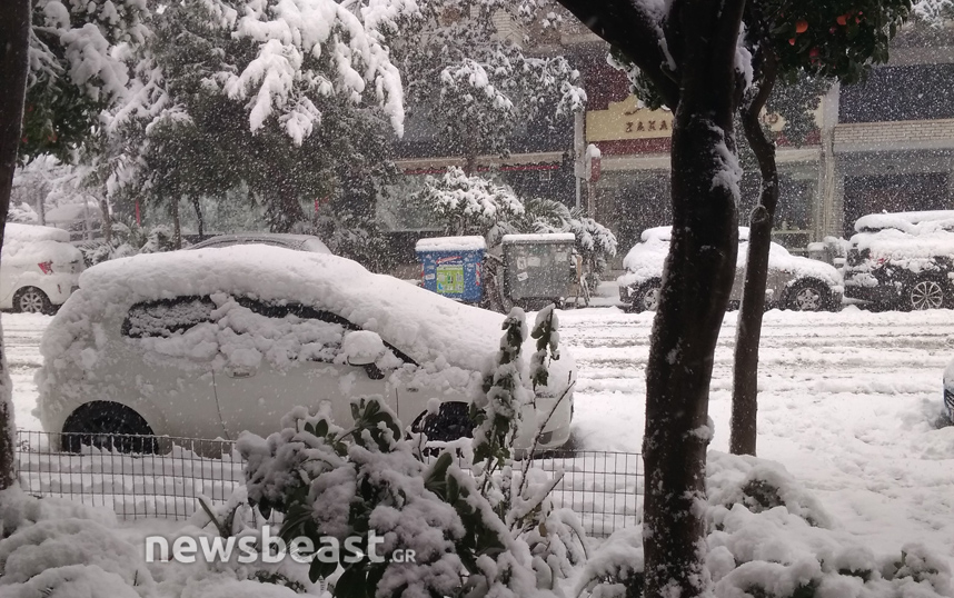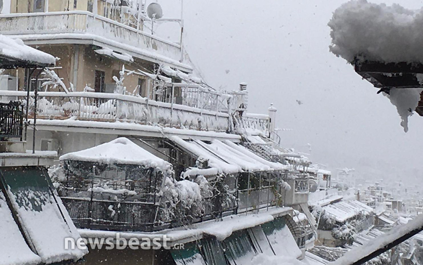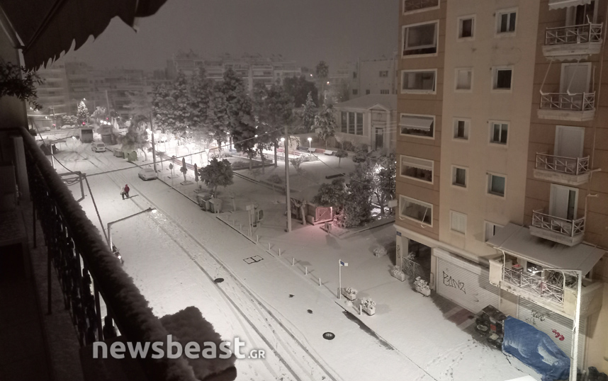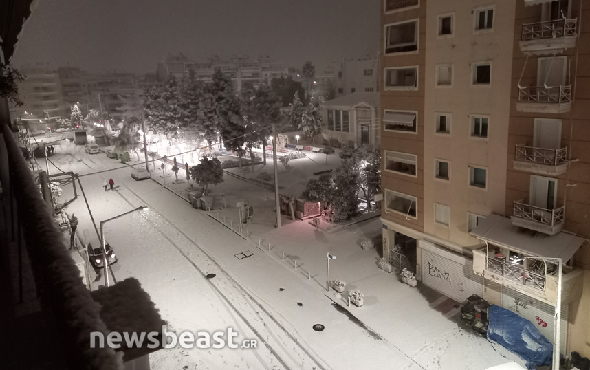 Σπάνιες εικόνες όμως έρχονται και από το κέντρο της πόλης, καθώς λίγες φορές το έχει στρώσει στο Σύνταγμα. Η πλατεία Συντάγματος έχει καλυφθεί με χιόνι και τα εκχιονιστικά μηχανήματα έχουν βγει από νωρίς στους δρόμους για να τους καθαρίσουν και να μην προκληθούν κυκλοφοριακά προβλήματα. Κάτασπρη είναι και η πλατεία Ομονοίας με το συντριβάνι της.