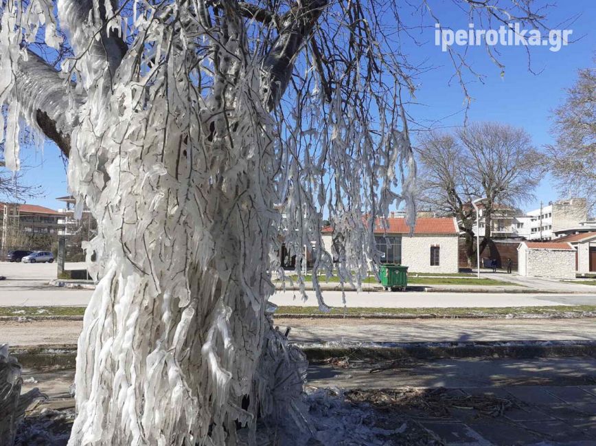 Εντυπωσιακές οι εικόνες ακόμη περισσότερο στη λίμνη και στο παραλίμνιο. Τα γλυπά από πάγο έκαναν κυριολεκτικά τα Γιάννενα… γυάλινα.