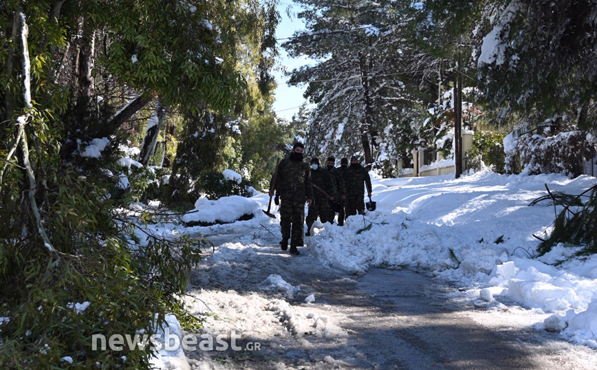 Αυτή τη στιγμή πάνω από πενήντα στρατιώτες συνδράμουν στο Διόνυσο, προκειμένου να αποκατασταθούν τα προβλήματα, καθώς με ειδική εξάρτυση, απομακρύνουν και κόβουν σπασμένα δέντρα, για να επιτρέψουν την πρόσβαση στους υπαλλήλους του ΔΕΔΔΗΕ και προκειμένου εκείνοι με την σειρά τους να αποκαταστήσουν τις βλάβες στο δίκτυο της ΔΕΗ.
