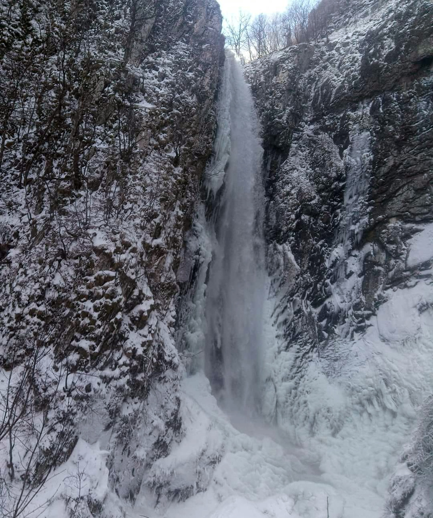 Όπως αποτυπώνεται σε φωτογραφία του Βασίλη Γεωργιάδη, στην ομάδα «Λειβαδίτης Ξάνθης» στο Facebook, ο καταρράκτης έχει παγώσει.