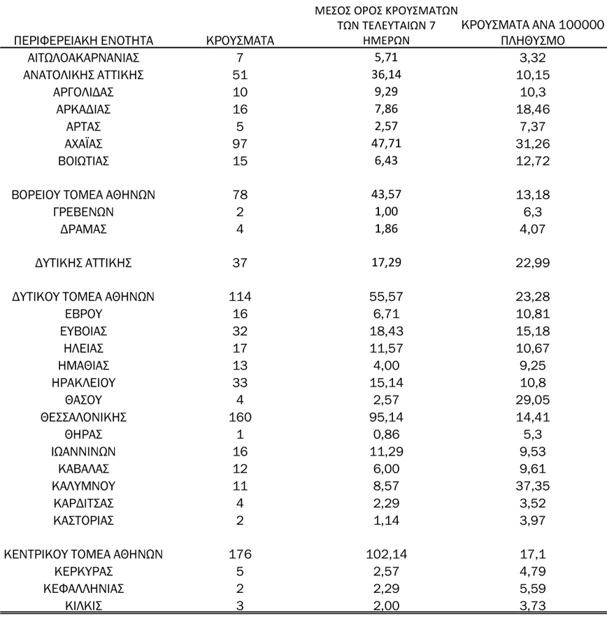 - 97 κρούσματα στην Π.Ε. Αχαΐας