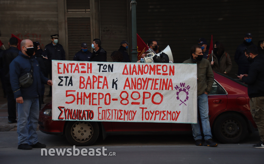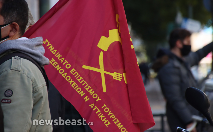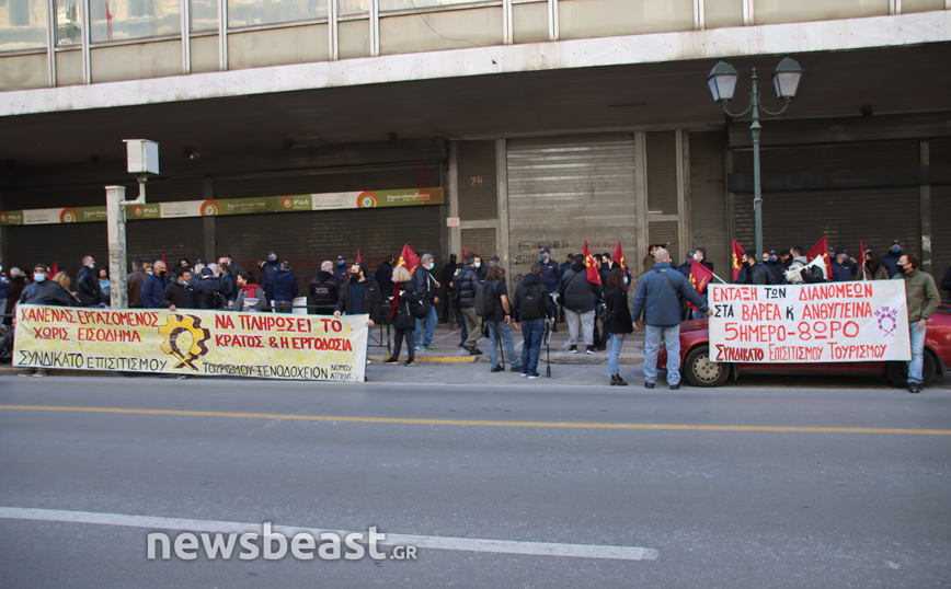 Νέα συγκέντρωση διαμαρτυρίας πραγματοποιήθηκε σήμερα στις 12:00 το μεσημέρι στο Υπουργείο Εργασίας, από το Συνδικάτο εργαζομένων Επισιτισμού-Τουρισμού-Ξενοδοχείων Αττικής και από επιχειρησιακά σωματεία.