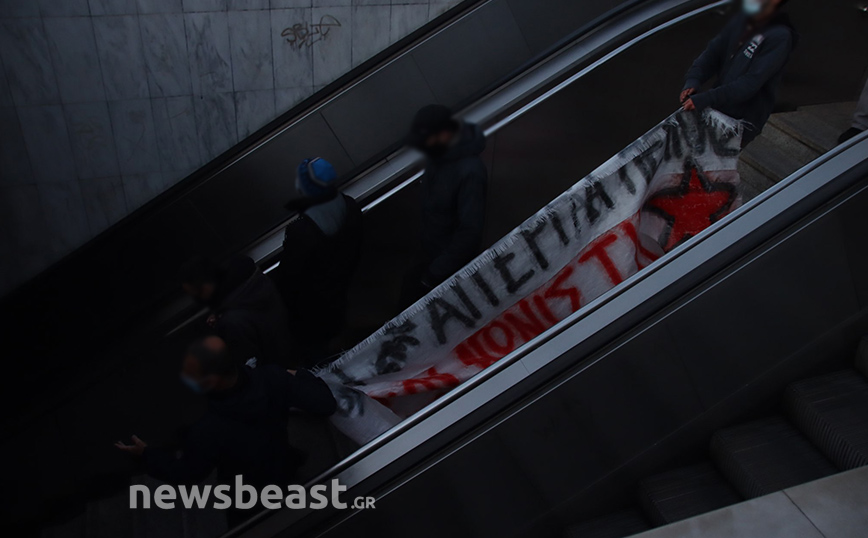 Πολύ μεγάλη αστυνομική δύναμη κυνήγησε τους διαδηλωτές μέχρι το Μετρό της Ομόνοιας χρησιμοποιώντας όλα τα μέσα πλην της αύρας, πετώντας χημικά.