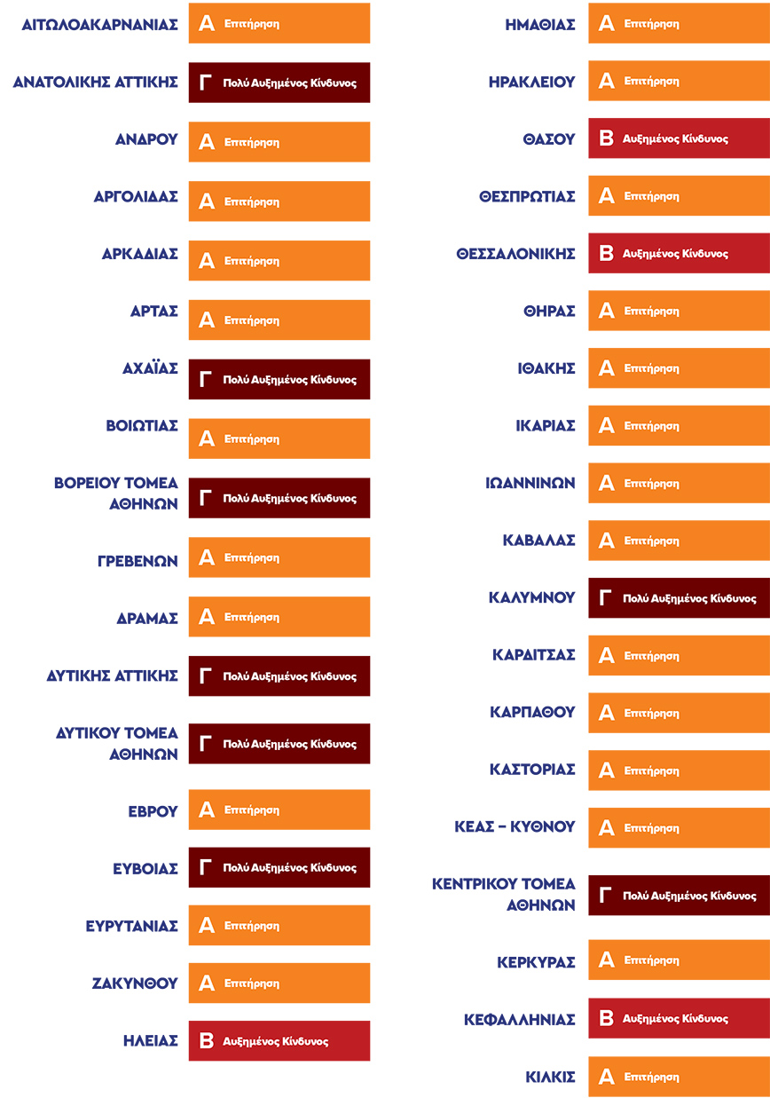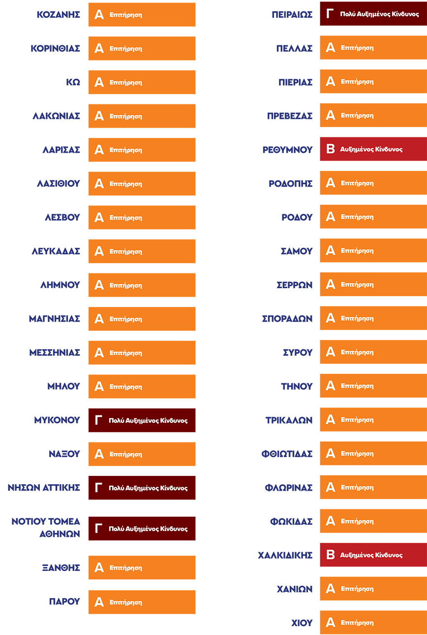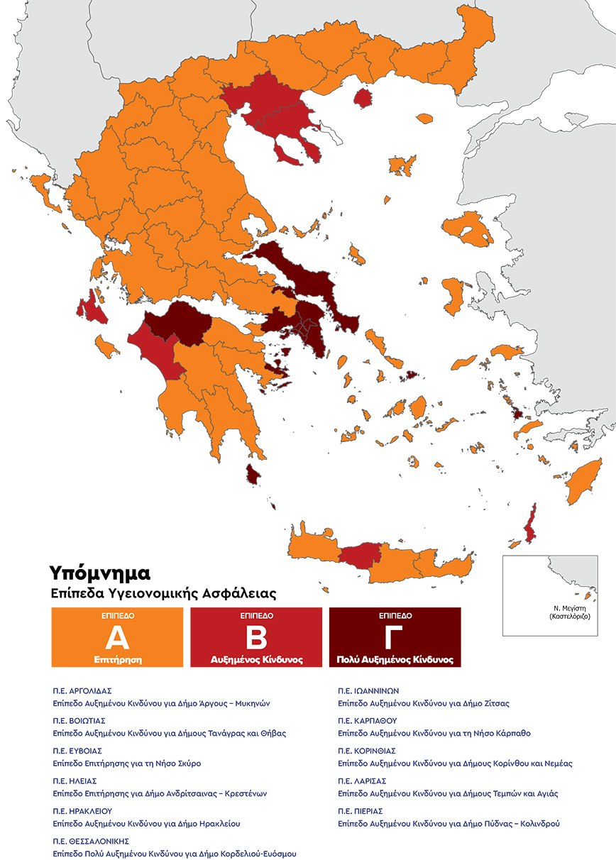 Έτσι, λοιπόν, η επιδημιολογική εικόνα της Ελλάδας αποτυπώνεται στον παρακάτω χάρτη