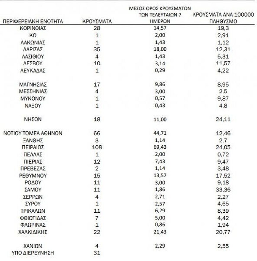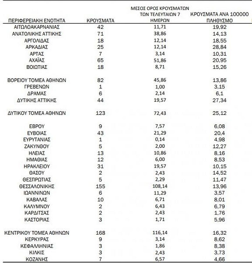 Ο Κεντρικός Τομέας Αθηνών καταγράφει 176 κρούσματα, ενώ ακολουθεί ο Πειραιάς με 143.
