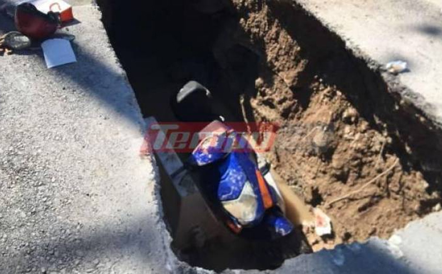 Σύμφωνα με μαρτυρίες η οδηγός δεν είχε δει τα έργα που πραγματοποιούνται στην περιοχή και έπεσε με το μηχανάκι της στο φρεάτιο.