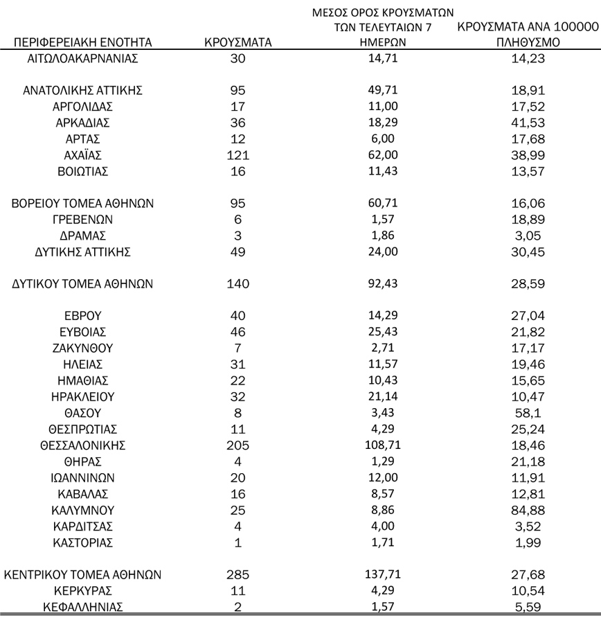- 30 κρούσματα στην Π.Ε. Αιτωλοακαρνανίας