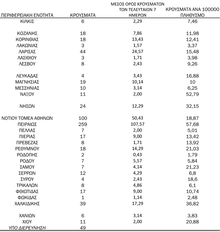 - 49 κρούσματα υπό διερεύνηση