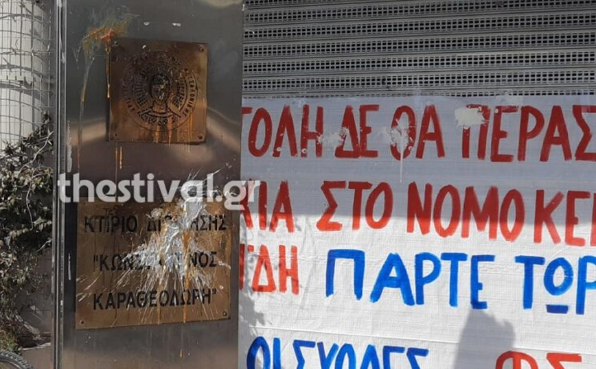 Υπό κατάληψη παραμένει το κτήριο διοίκησης του Αριστοτελείου Πανεπιστημίου Θεσσαλονίκης, μετά την αστυνομική επιχείρηση και τα επεισόδια που σημειώθηκαν το μεσημέρι της Δευτέρας.
