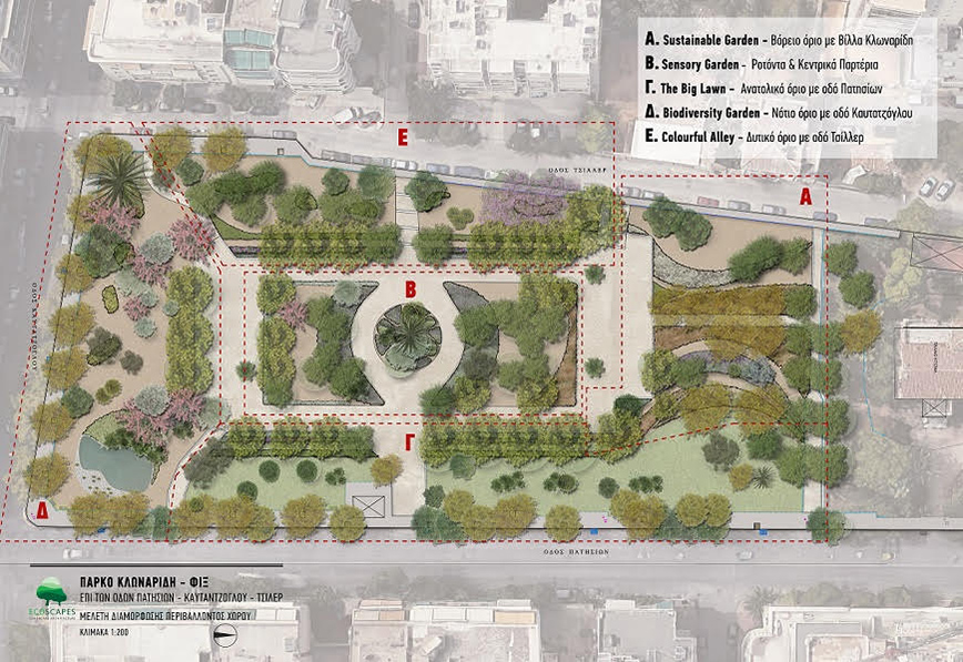 Ο σχεδιασμός προβλέπει την ανανέωση του πάρκου, σύμφωνα με τις σύγχρονες διεθνείς τάσεις της αρχιτεκτονικής τοπίου και του περιβαλλοντικού σχεδιασμού. Ήδη, ο Δήμος Αθηναίων έχει προχωρήσει τα έργα αποκατάστασης των μονοπατιών του πάρκου με υδατοπερατό υλικό, καθώς και του αστικού εξοπλισμού όπως το σιντριβάνι και τα παγκάκια. Σύμφωνα με τη μελέτη που εκπονήθηκε από την εταιρεία αρχιτεκτονικής τοπίου Ecoscapes σε συνεργασία με τη Διεύθυνση Πρασίνου και Αστικής Πανίδας του Δήμου Αθηναίων, στο πάρκο πρόκειται να φυτευτούν 4.000 φυτά της μεσογειακής χλωρίδας που παρουσιάζουν μεγάλη αντοχή στον αστικό ιστό και τη ρύπανση, καθώς και χαμηλές ανάγκες σε νερό. Στο κεντρικό τμήμα του πάρκου θα δημιουργηθεί ένας κήπος αφιερωμένος στις αισθήσεις (sensory garden) που θα αποτελείται από φυτά με διαφορετικά χρώματα και υφές φυλλώματος και ανθών, τα οποία παρουσιάζουν έντονο εποχιακό και βοτανικό ενδιαφέρον. Στο νότιο όριο του πάρκου δημιουργείται ένας κήπος αφιερωμένος στη βιοποικιλότητα, με τη φύτευση αειθαλών μεσογειακών θάμνων κάτω από τα δένδρα και υδροχαρών φυτών γύρω από τη λίμνη, από τους λιγοστούς εναπομείναντες φυσικούς βιοτόπους της Αττικής. Η δυτική αλέα με τα πλατάνια τονίζεται με γραμμικές φυτεύσεις πολυετών ποωδών ειδών και θάμνων, ενώ στο ανατολικό όριο με την οδό Πατησίων αποκαθίσταται η επιφάνεια του χλοοτάπητα, με στόχο να αποτελέσει σημείο συνάντησης και διεξαγωγής υπαίθριων δραστηριοτήτων. Η ανάπλαση αναμένεται να ολοκληρωθεί μέσα στην άνοιξη, οπότε και το πάρκο ΦΙΞ θα παραδοθεί στους κατοίκους και τους επισκέπτες της περιοχής.