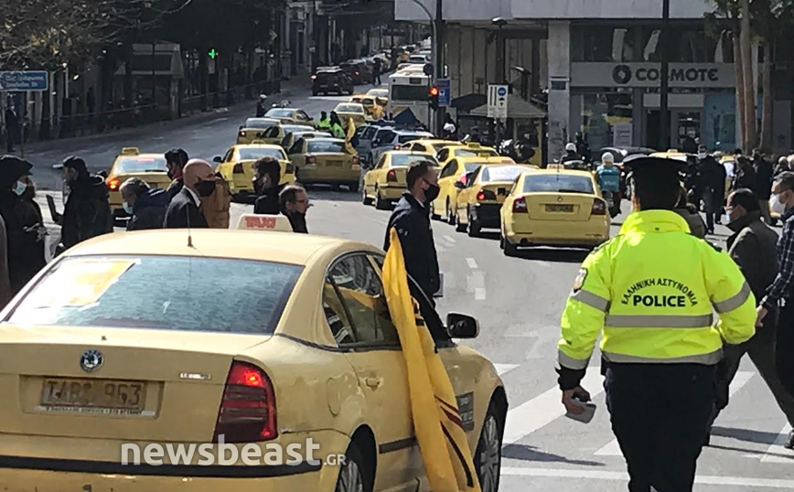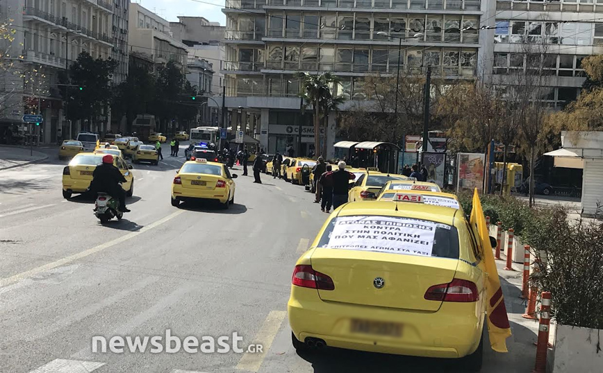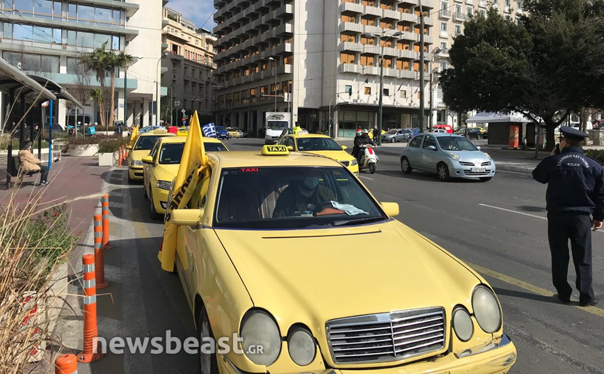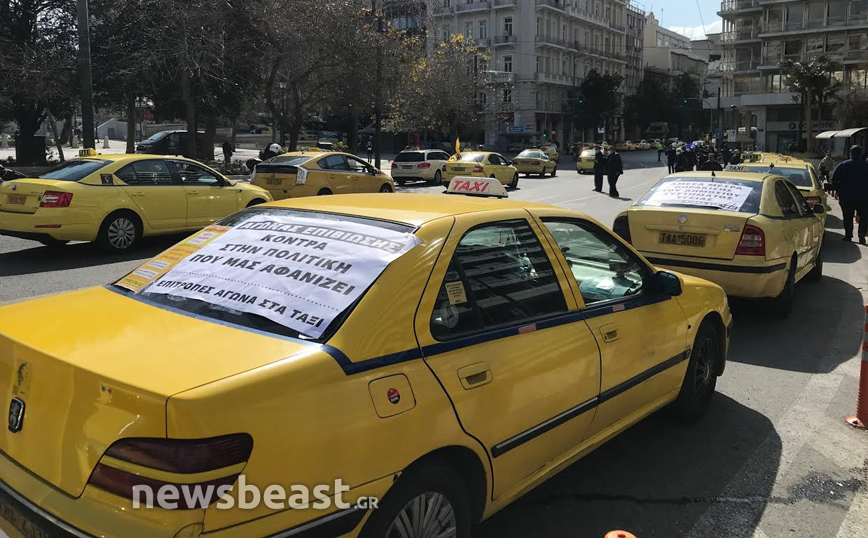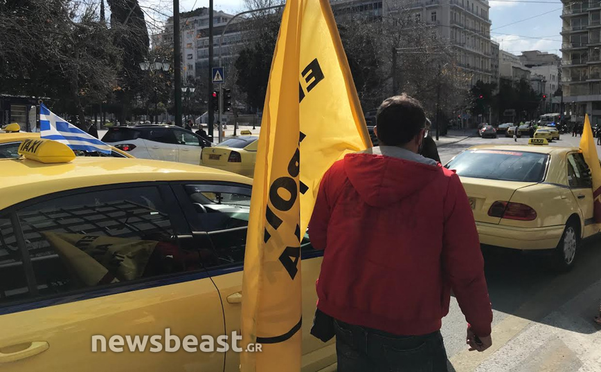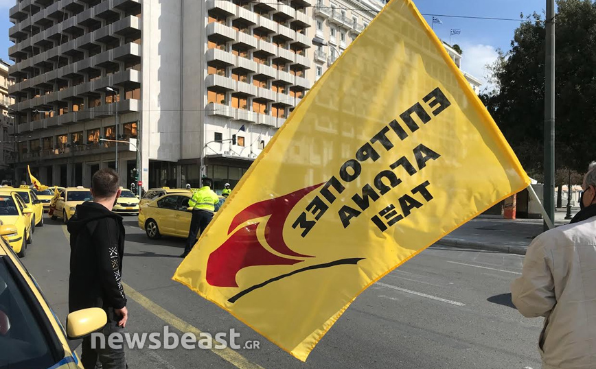 Διαμαρτυρία στην πλατεία Συντάγματος πραγματοποιούν αυτή την ώρα δεκάδες ταξιτζήδες με τα οχήματά τους, οι οποίοι κορνάρουν και κρατούν σημαίες. «Αγώνας επιβίωσης κόντρα στην πολιτική που μας αφανίζει», είναι το μήνυμα της κινητοποίησης από τις Επιτροπές Αγώνα στα Ταξί.