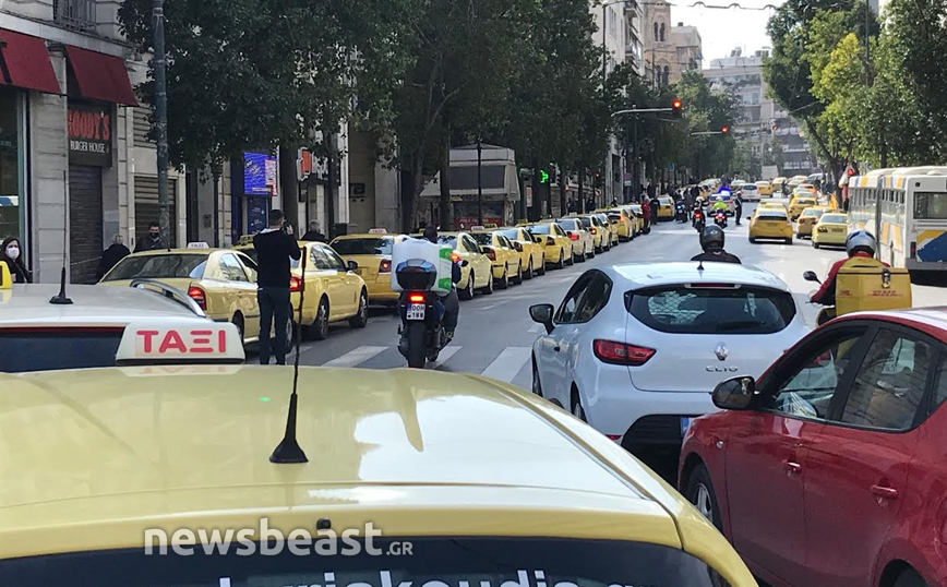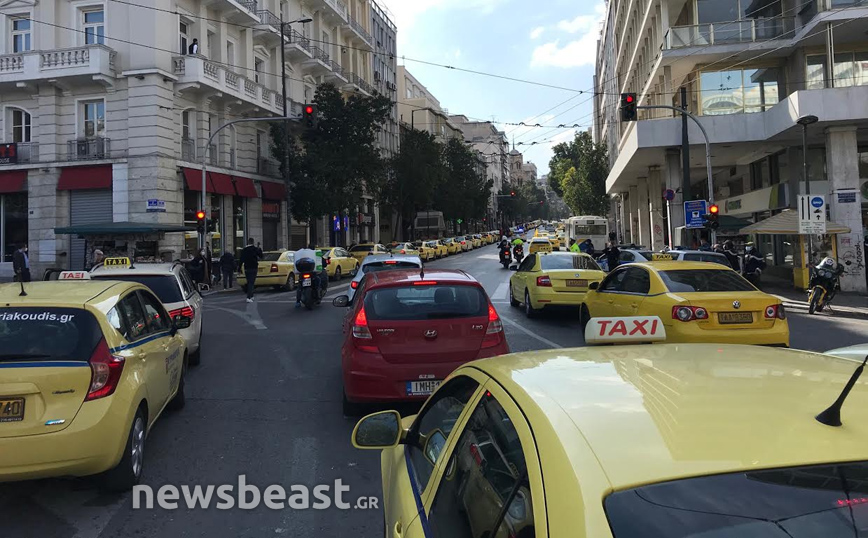 Παρά τα δεκάδες ταξί, ο δρόμος παραμένει ανοιχτός.
