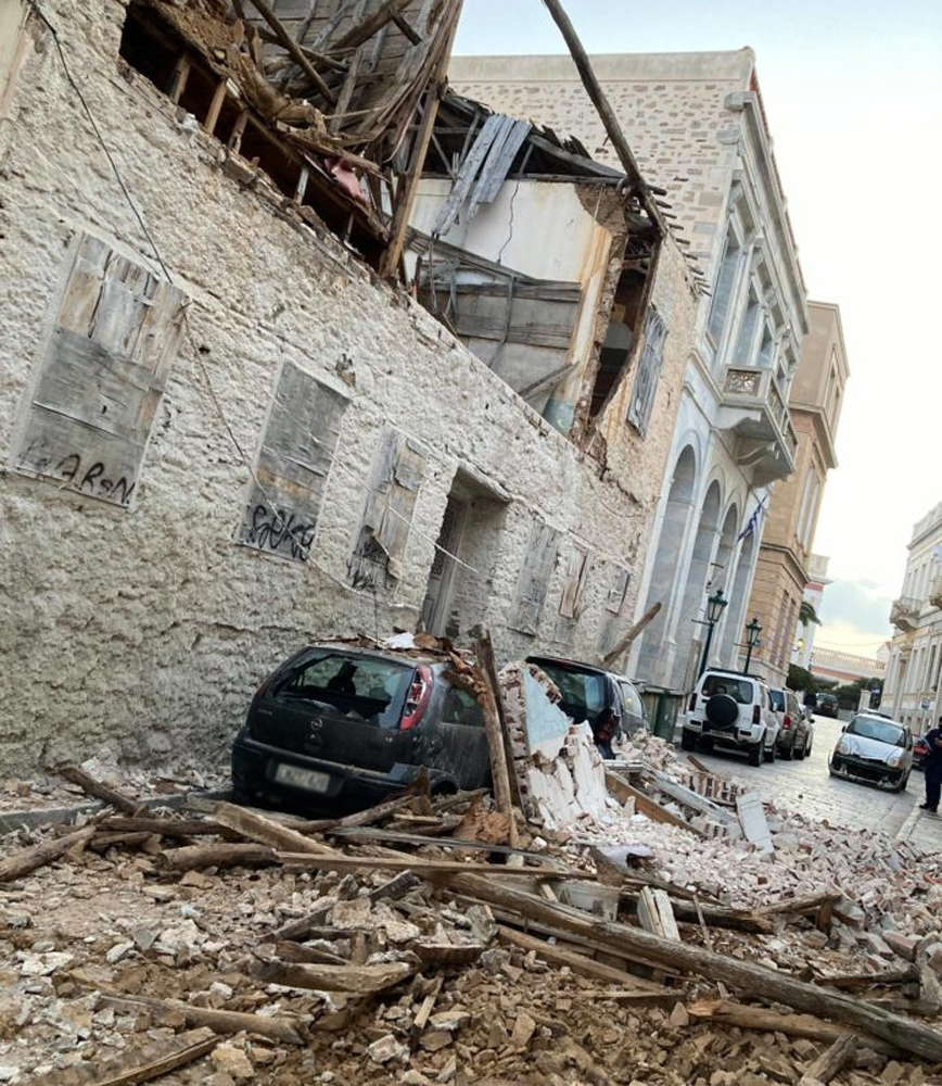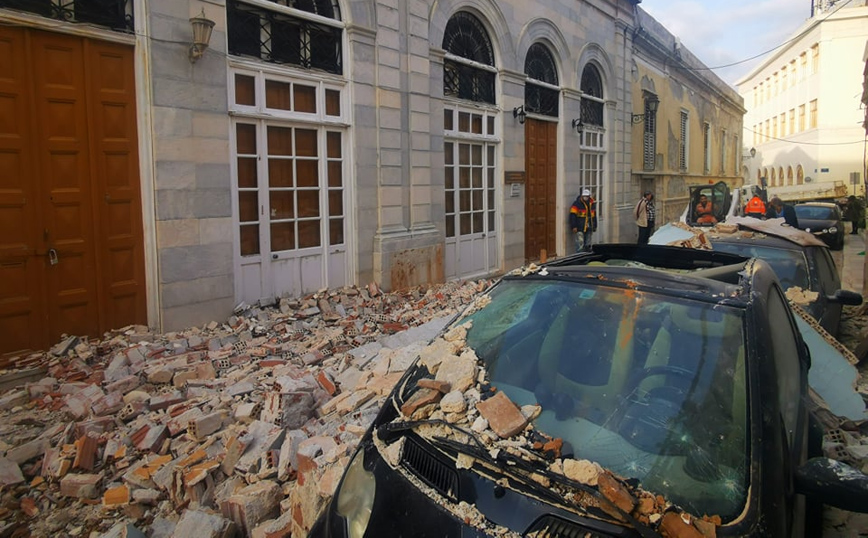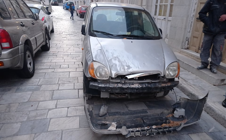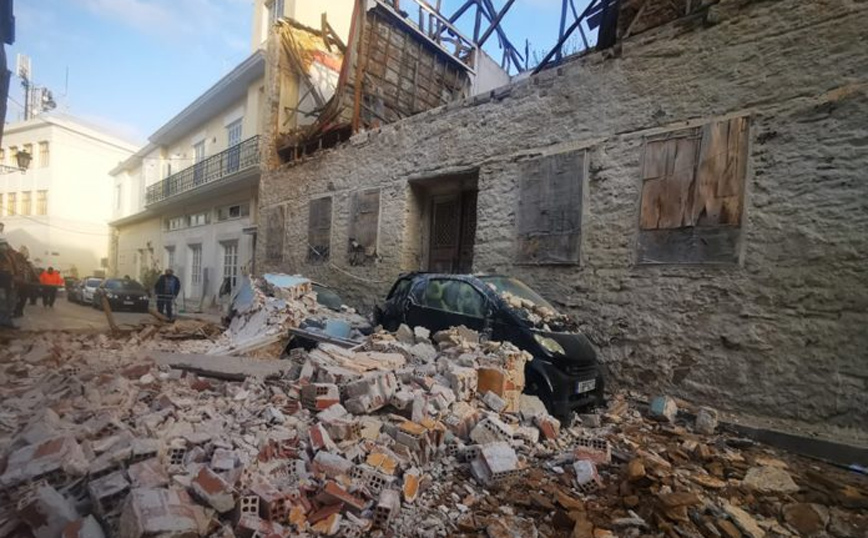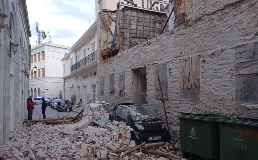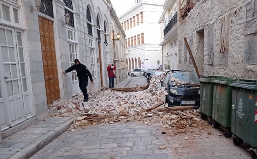 Ο τοίχος του κτιρίου υποχώρησε από τον πρώτο όροφο με αποτέλεσμα να πέσει από ύψος πάνω σε δύο σταθμευμένα οχήματα, αλλά και σε ένα τρίτο διερχόμενο στα οποία προκάλεσε υλικές ζημιές. Από την πτώση του τοίχου έκλεισε τελείως ο δρόμος αναφέρει το cyclades24.gr.