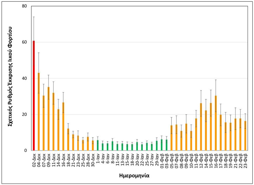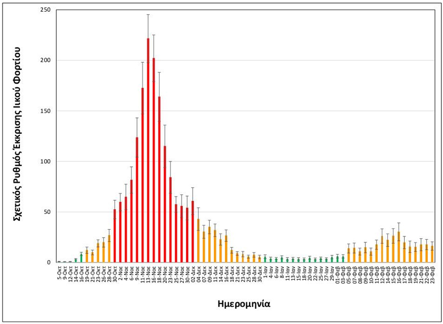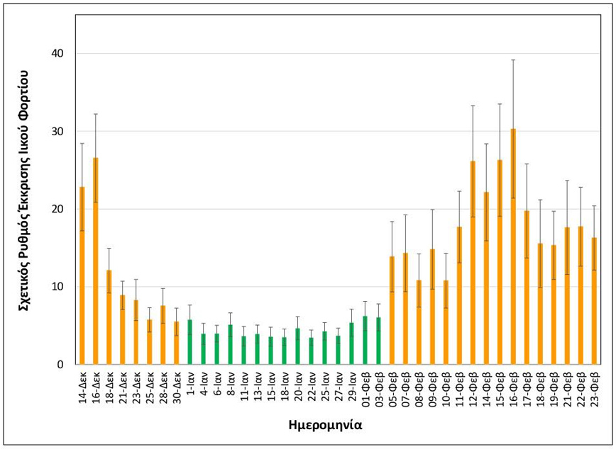 Σύμφωνα με τα νεότερα αποτελέσματα της ομάδας του ΑΠΘ, για τη Δευτέρα 22 και την Τρίτη 23 Φεβρουαρίου, οι εξορθολογισμένες μέσες τιμές σχετικής έκκρισης ιικού φορτίου είναι: