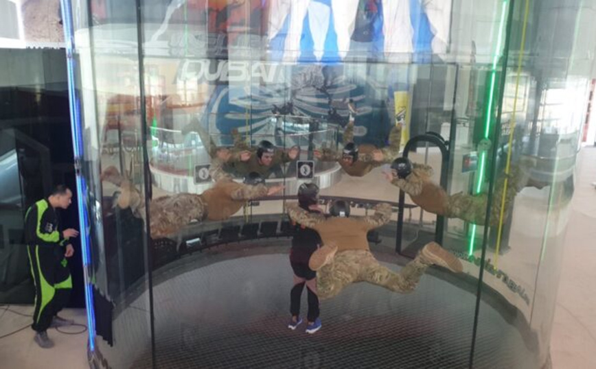 Ολοκληρώθηκε η εκπαίδευση του προσωπικού της διακλαδικής διοίκησης ειδικών επιχειρήσεων του Γενικού Επιτελείου Εθνικής Άμυνας, η οποία πραγματοποίησε από την Παρασκευή 19, έως σήμερα, Πέμπτη 25 Φεβρουαρίου, στον εξομοιωτή ελεύθερης πτώσης (αεροσήραγγα) που διαθέτουν τα Ηνωμένα Αραβικά Εμιράτα.