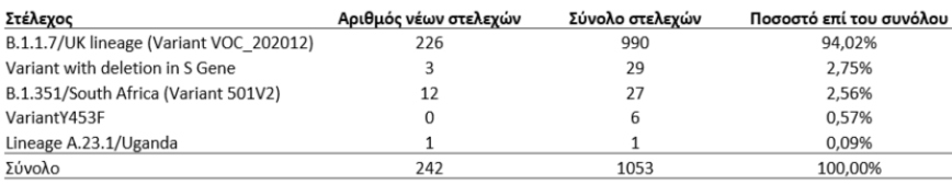 Συγκεκριμένα από τον έλεγχο αναδείχθηκαν συνολικά 242 στελέχη με μεταλλάξεις ειδικού ενδιαφέροντος (variants of concern).