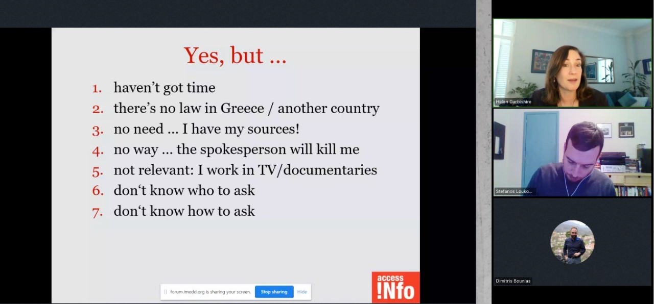 -Workshop «Το δικαίωμα πρόσβασης στη δημόσια πληροφορία ως εργαλείο δημοσιογραφικής έρευνας», όπου οι Helen Darbishire (Access Info Europe) και Στέφανος Λουκόπουλος (Vouliwatch) έδωσαν παραδείγματα και συμβουλές γύρω από το πώς οι δημοσιογράφοι μπορούν να διεκδικούν χρήσιμες πληροφορίες από δημόσιους παράγοντες για να πραγματοποιούν τα ρεπορτάζ τους.