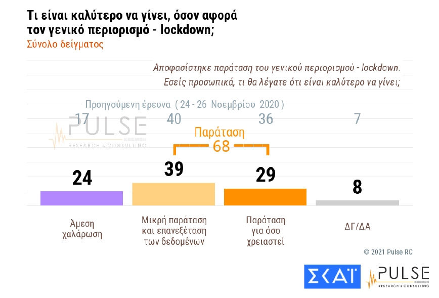 Αξιοσημείωτο εύρημα είναι πως το 68% των ερωτηθέντων επιθυμούν παράταση του lockdown.