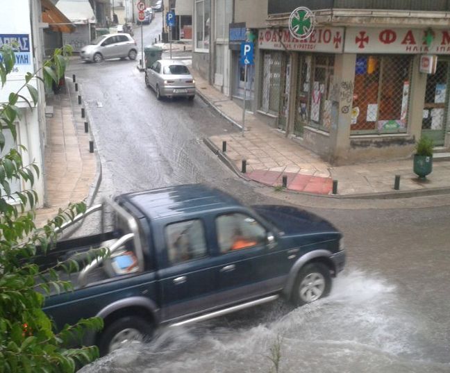 Ο κόσμος προσπαθούσε να διασχίσει τους δρόμους αλλά μάταια, καθότι η βροχή τους είχε μετατρέψει σε… πισίνες, με το κολύμπι να ενδείκνυται σε σχέση με το περπάτημα.