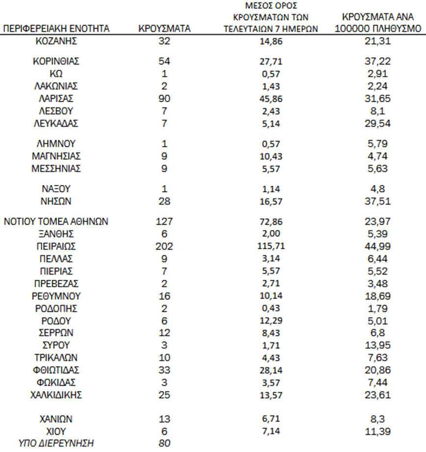 - 80 κρούσματα υπό διερεύνηση