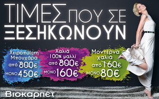 Φέτος οι τιμές της Βιοκαρπέτ ξεπερνούν κάθε μα κάθε προηγούμενο! Ό,τι χαλί και να διαλέξετε (μοντέρνο, κλασικό, παιδικό ή χειροποίητο) είναι σε μοναδική ευκαιρία.