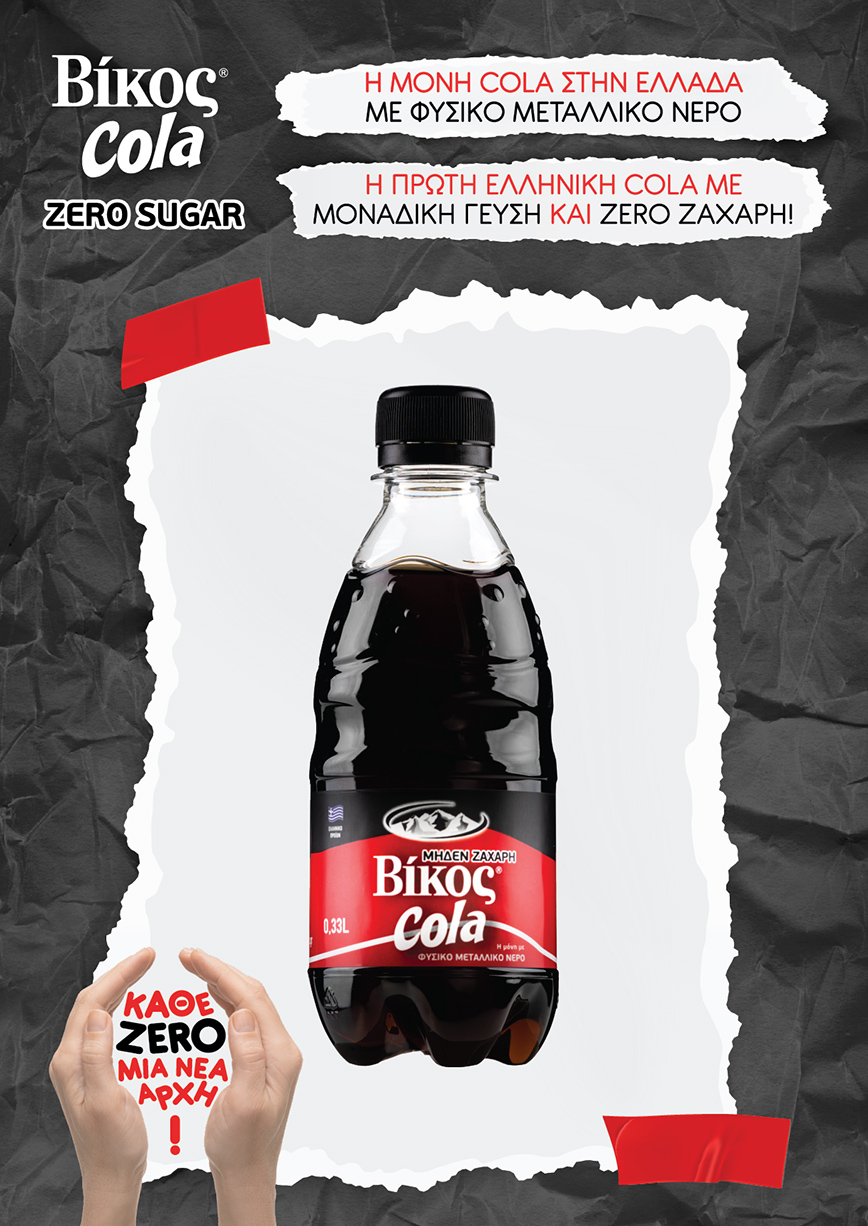 Υποδεχόμαστε τη νέα Βίκος Cola Zero Sugar, την πρώτη ελληνική cola με μηδέν ζάχαρη και, βέβαια, τη μόνη Cola Zero Sugar με φυσικό μεταλλικό νερό και αποκλειστική συνταγή! H αγαπημένη και πολυβραβευμένη ελληνική εταιρεία Βίκος φέρνει μία μοναδική πρόταση εμπλουτίζοντας την οικογένεια των αναψυκτικών της!
