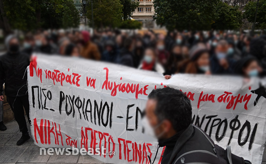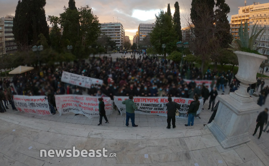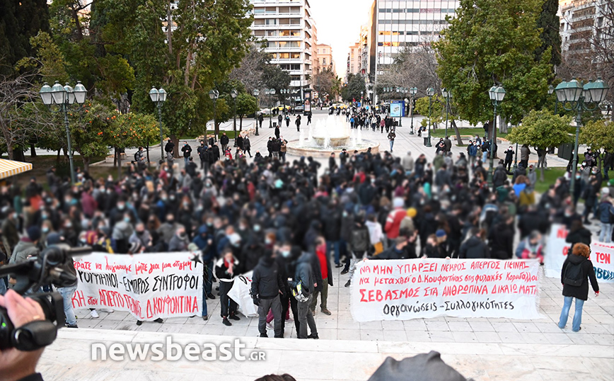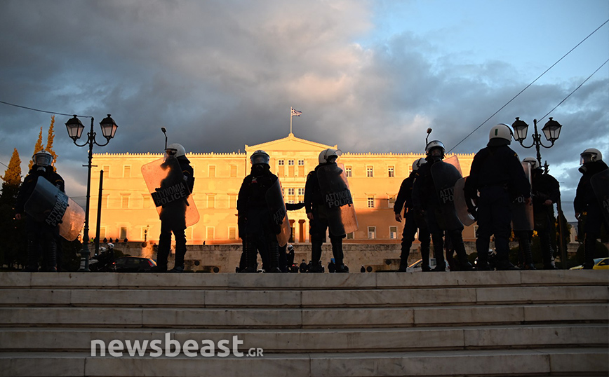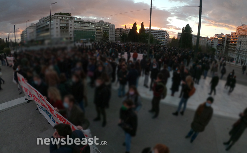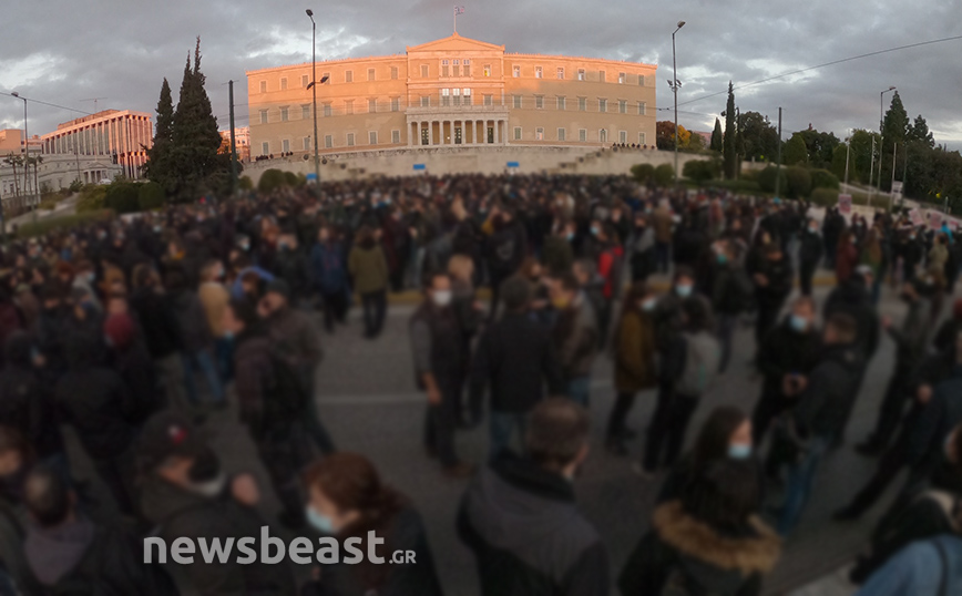 Οι διαδηλωτές συγκεντρώθηκαν από τις 18:00 στην πλατεία Συντάγματος και στη συνέχεια μπροστά στη Βουλή επί της οδού Αμαλίας.