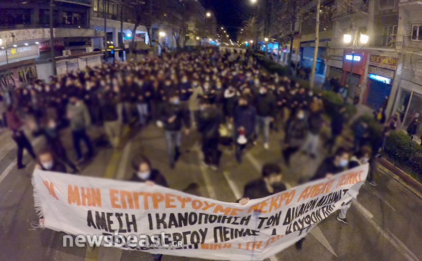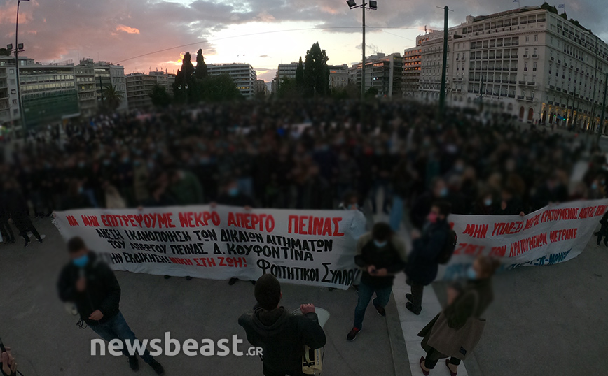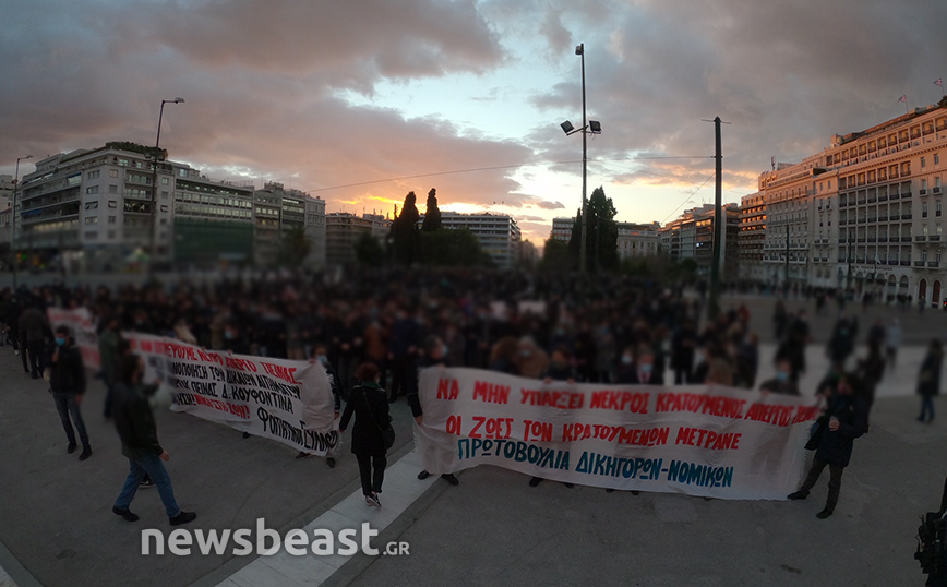 Λίγο μετά τις 19:00 η πορεία κατευθύνθηκε προς την Πανεπιστημίου, με τους διαδηλωτές να κρατούν πανό υπέρ του απεργού πείνας.